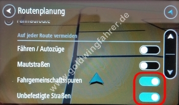 man unter anderem einstellen was auf einer Route vermieden werden soll.